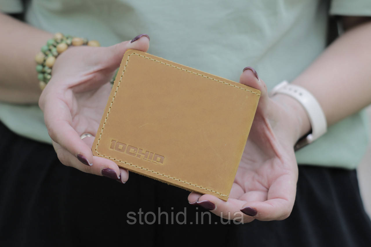 Шкіряна обкладинка для посвідчення УБД Жовта Стохід, чохол для документів зі вставкою ПВХ
